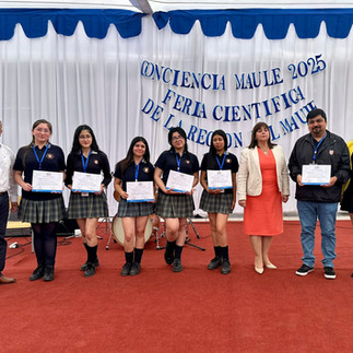 Cinco estudiantes de III° Medio, representaron con orgullo a nuestro colegio en la Feria ConCiencia Maule 2025, organizada por el Colegio Pablo de Rokha en Orilla de Maule, San Javier. La actividad, realizada el martes 4 de noviembre, reunió a 20 establecimientos de diversas comunas de la región, destacando el compromiso con la investigación y el aprendizaje científico.